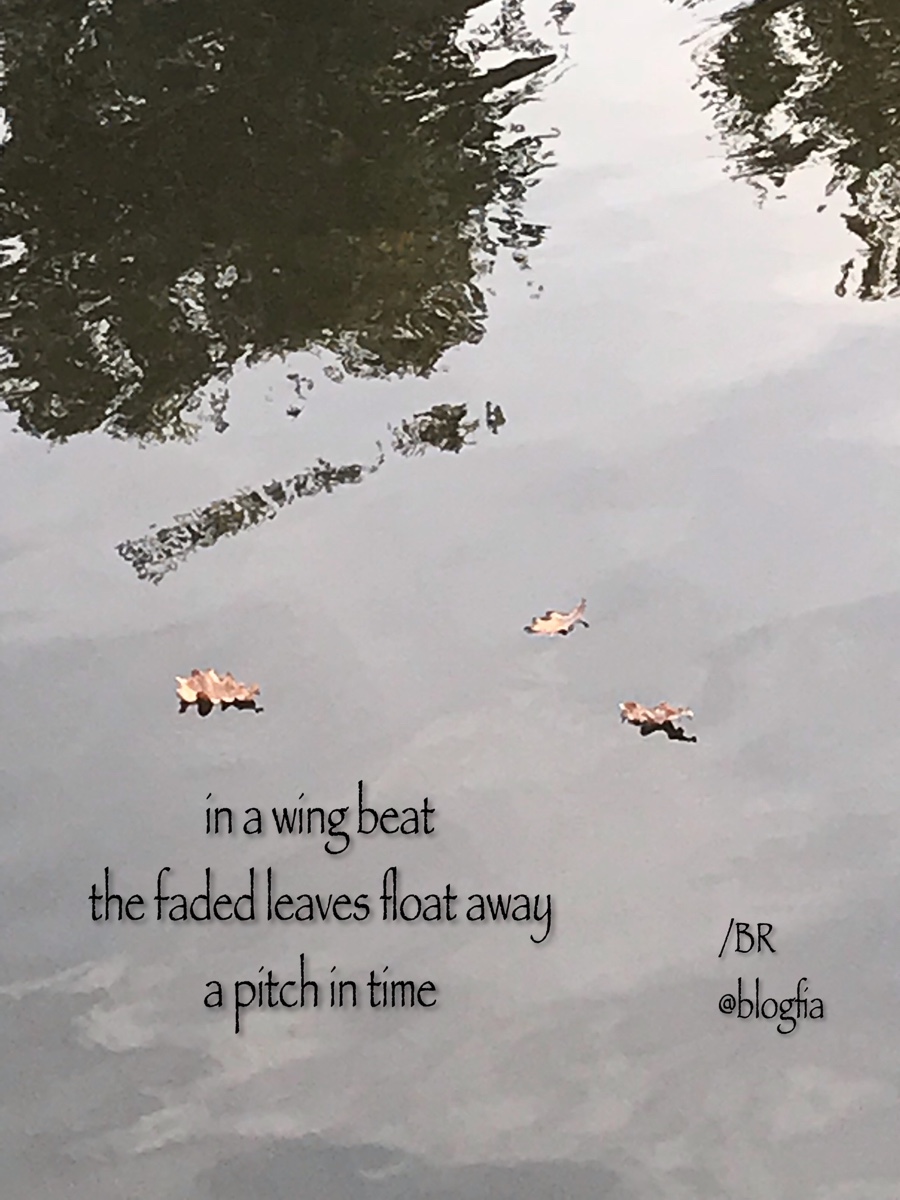 A pitch in time 5Nov 2018Lägg till en kommentar – in a wing beat – the faded leaves float away – a pitch in time – Dela detta: Dela på X (Öppnas i ett nytt fönster) X Dela på Facebook (Öppnas i ett nytt fönster) Facebook Gilla Laddar in … Related