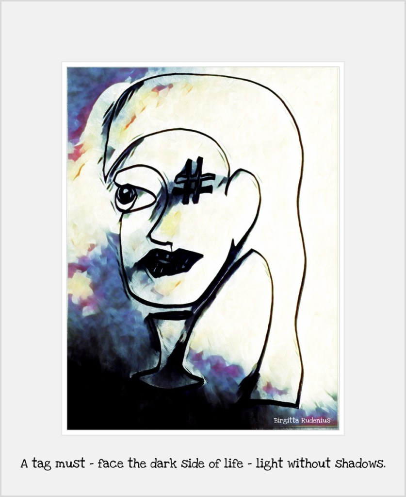 The dark side of life 3Sep 2021Lägg till en kommentar A tag must – face the dark side of life – light without shadows. Dela detta: Dela på X (Öppnas i ett nytt fönster) X Dela på Facebook (Öppnas i ett nytt fönster) Facebook Gilla Laddar in … Related